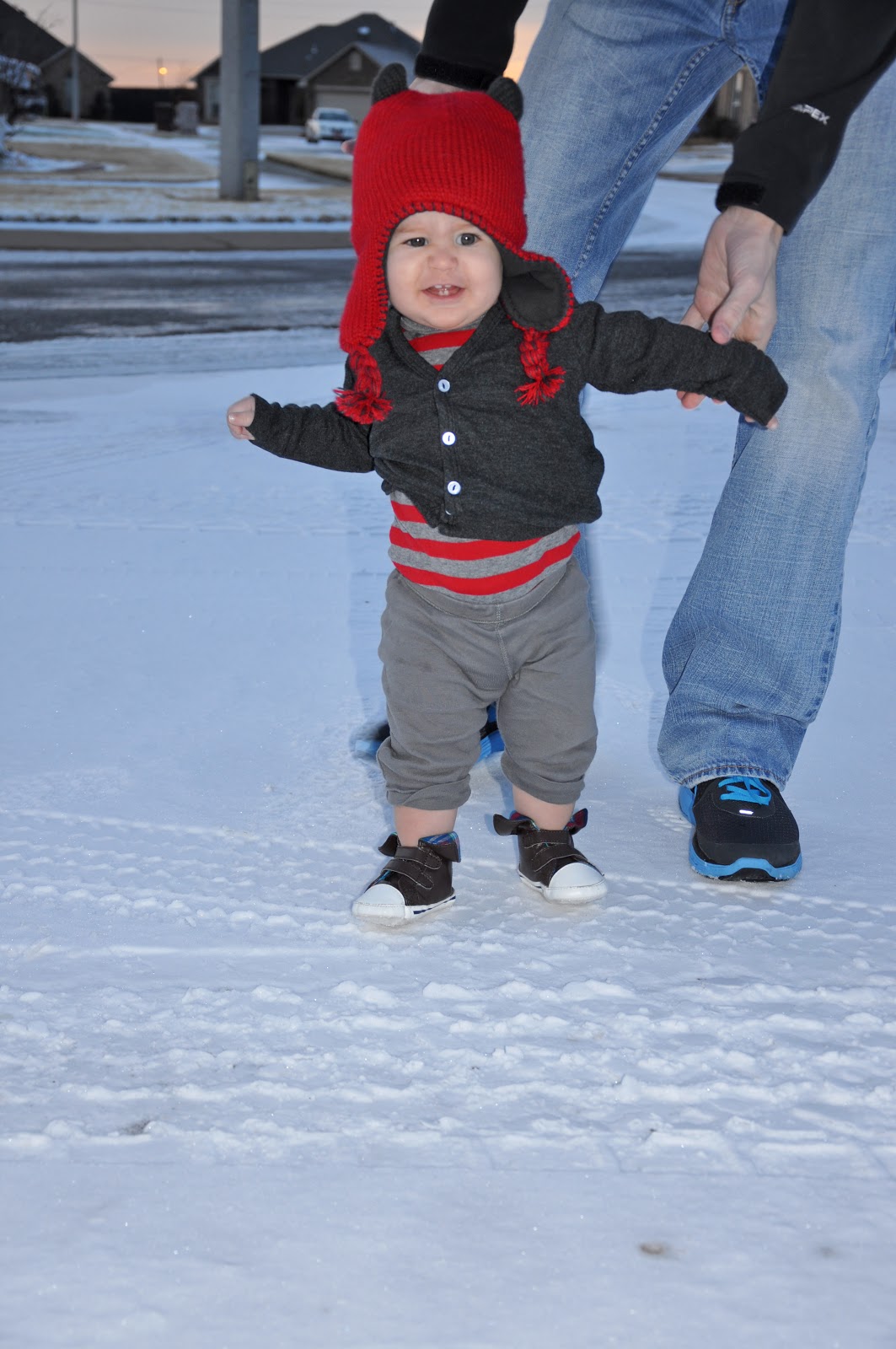 Awww yay for snow!! :) I love these photos. It actually looks kind of warmish for snow?? Hope he gets to enjoy some more this winter. Wish I could take Alidia to visit the snow too!